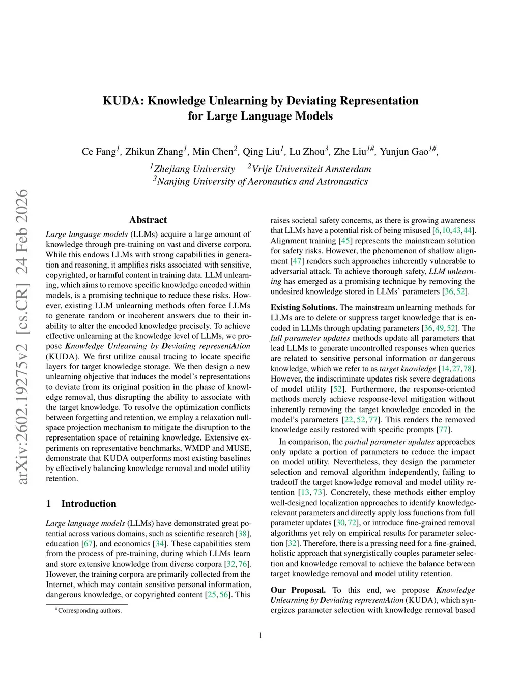 KUDA: Knowledge Unlearning by Deviating Representation for Large Language Models