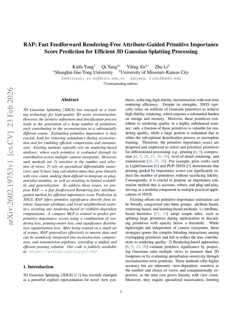 RAP: Fast Feedforward Rendering-Free Attribute-Guided Primitive Importance Score Prediction for Efficient 3D Gaussian Splatting Processing