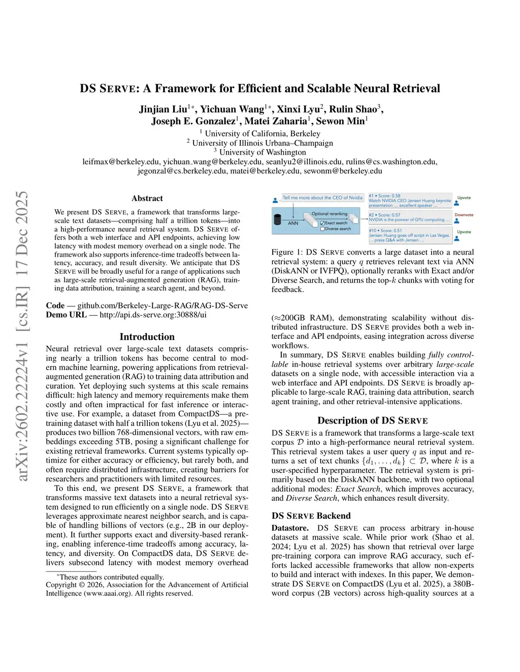 DS SERVE: A Framework for Efficient and Scalable Neural Retrieval