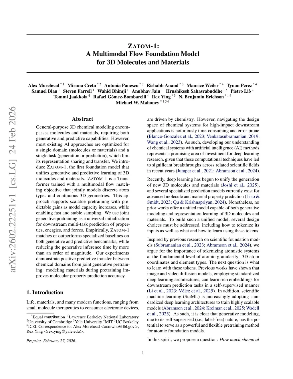 Zatom-1: A Multimodal Flow Foundation Model for 3D Molecules and Materials