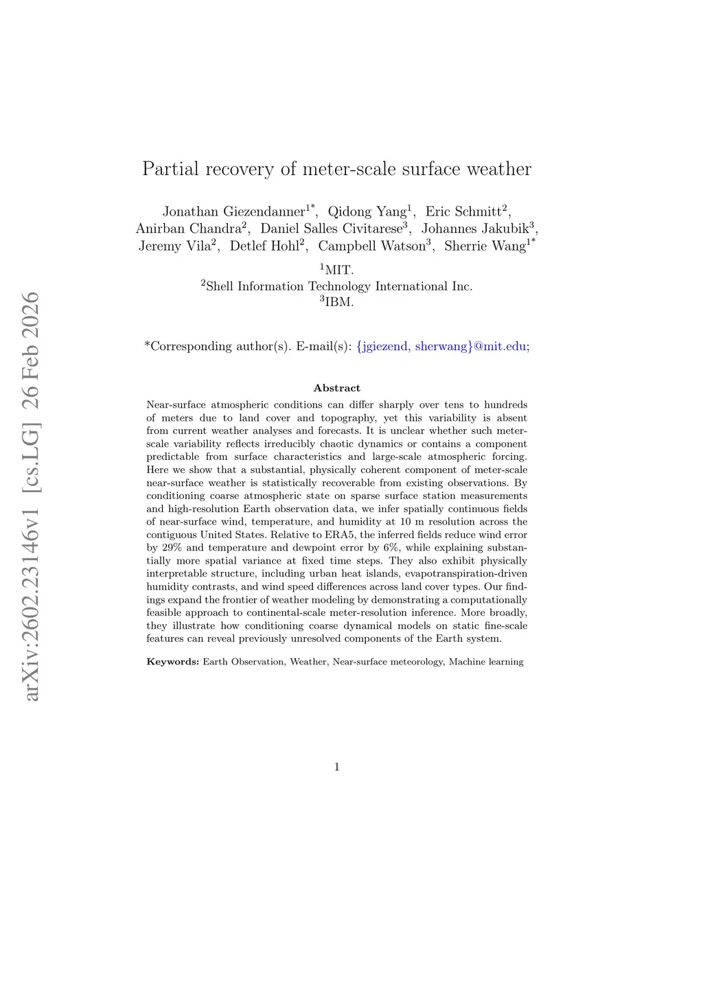 Partial recovery of meter-scale surface weather