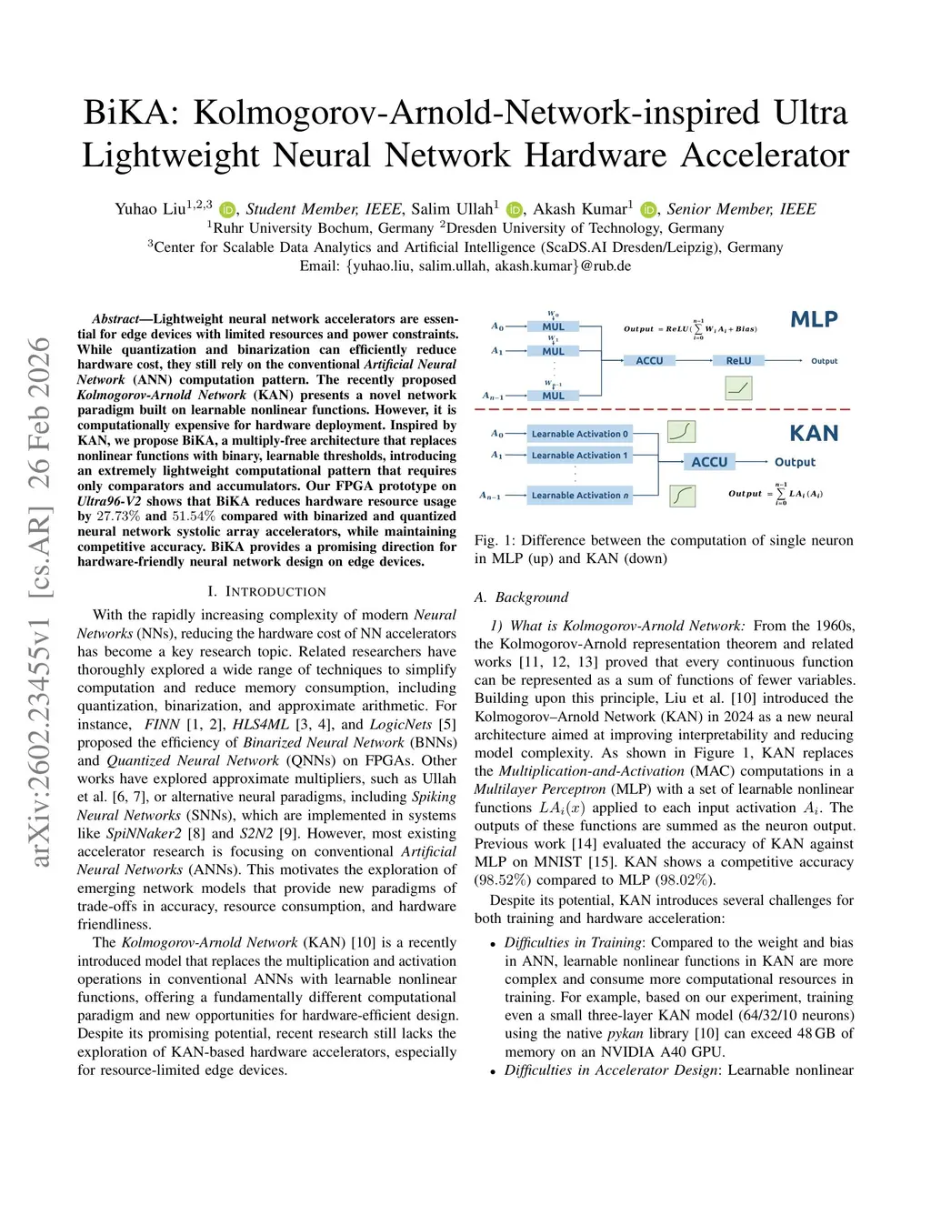 BiKA: Kolmogorov-Arnold-Network-inspired Ultra Lightweight Neural Network Hardware Accelerator