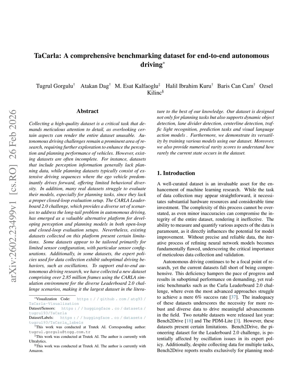 TaCarla: A comprehensive benchmarking dataset for end-to-end autonomous driving