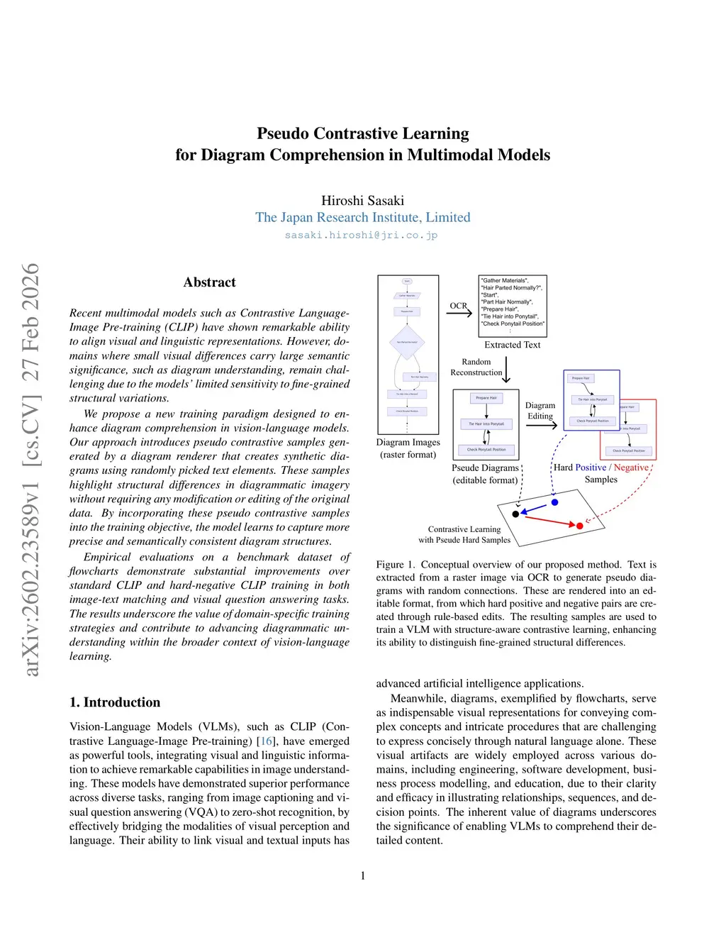 Pseudo Contrastive Learning for Diagram Comprehension in Multimodal Models