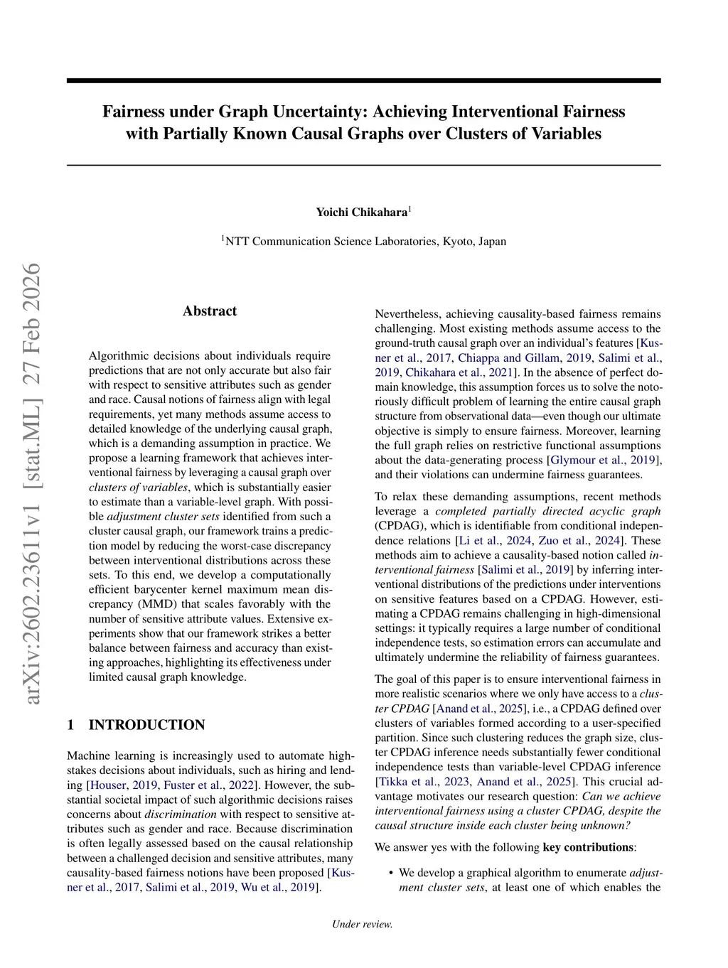 Algorithmic decisions about individuals require predictions that are not only accurate but also fair with respect to sensitive attributes such as gender and race. Causal notions of fairness align with legal requirements, yet many methods assume access to detailed knowledge of the underlying causal graph, which is a demanding assumption in practice. We propose a learning framework that achieves interventional fairness by leveraging a causal graph over \textit{clusters of variables}, which is substantially easier to estimate than a variable-level graph. With possible \textit{adjustment cluster sets} identified from such a cluster causal graph, our framework trains a prediction model by reducing the worst-case discrepancy between interventional distributions across these sets. To this end, we develop a computationally efficient barycenter kernel maximum mean discrepancy (MMD) that scales favorably with the number of sensitive attribute values. Extensive experiments show that our framework strikes a better balance between fairness and accuracy than existing approaches, highlighting its effectiveness under limited causal graph knowledge.