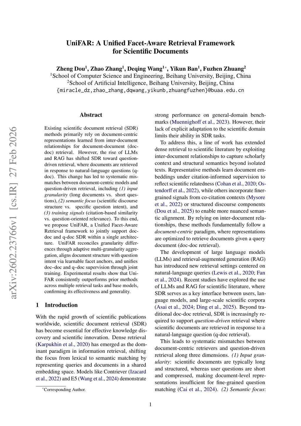 UniFAR: A Unified Facet-Aware Retrieval Framework for Scientific Documents
