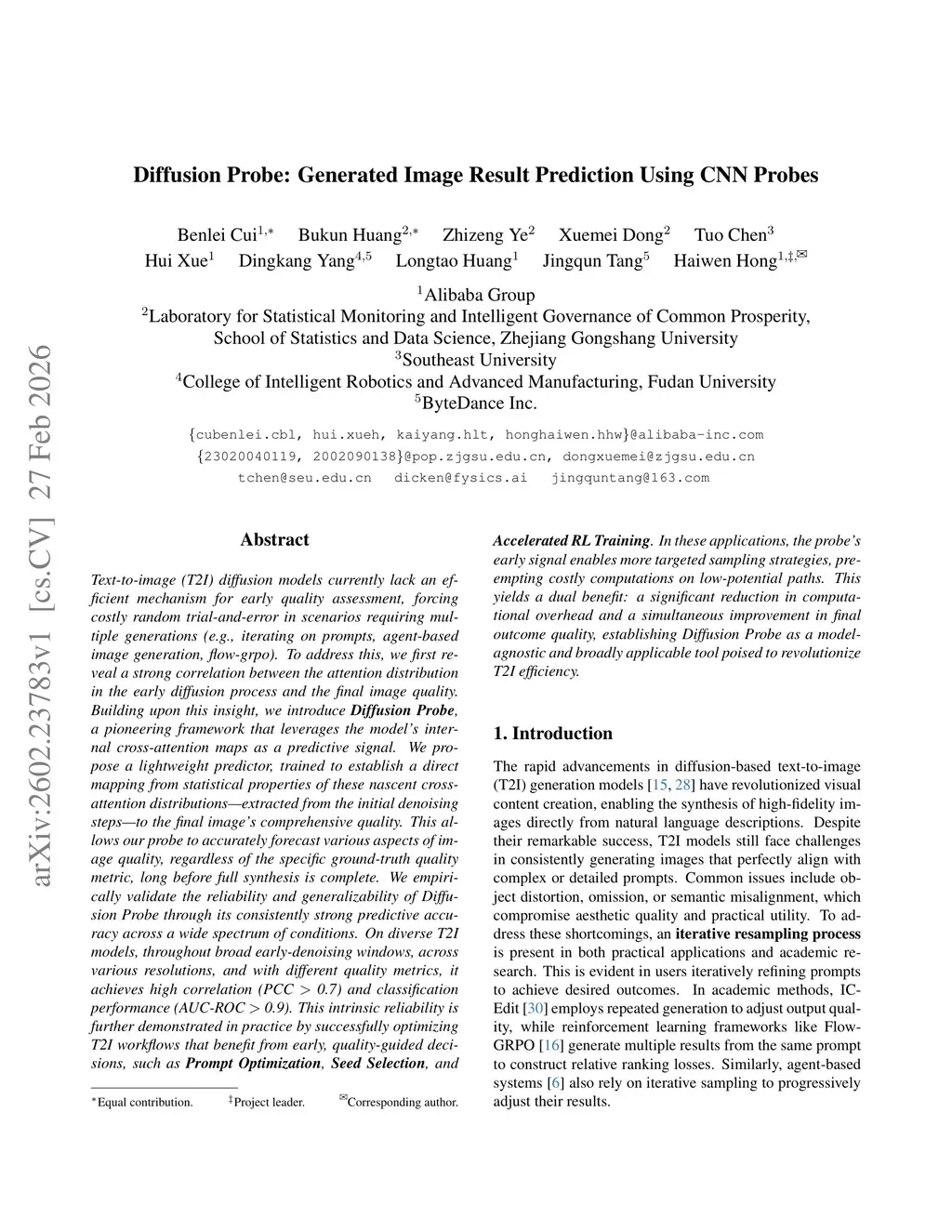 Text-to-image (T2I) diffusion models lack an efficient mechanism for early quality assessment, leading to costly trial-and-error in multi-generation scenarios such as prompt iteration, agent-based generation, and flow-grpo. We reveal a strong correlation between early diffusion cross-attention distributions and final image quality. Based on this finding, we introduce Diffusion Probe, a framework that leverages internal cross-attention maps as predictive signals. We design a lightweight predictor that maps statistical properties of early-stage cross-attention extracted from initial denoising steps to the final image's overall quality. This enables accurate forecasting of image quality across diverse evaluation metrics long before full synthesis is complete. We validate Diffusion Probe across a wide range of settings. On multiple T2I models, across early denoising windows, resolutions, and quality metrics, it achieves strong correlation (PCC > 0.7) and high classification performance (AUC-ROC > 0.9). Its reliability translates into practical gains. By enabling early quality-aware decisions in workflows such as prompt optimization, seed selection, and accelerated RL training, the probe supports more targeted sampling and avoids computation on low-potential generations. This reduces computational overhead while improving final outputthis http URLProbe is model-agnostic, efficient, and broadly applicable, offering a practical solution for improving T2I generation efficiency through early quality prediction.