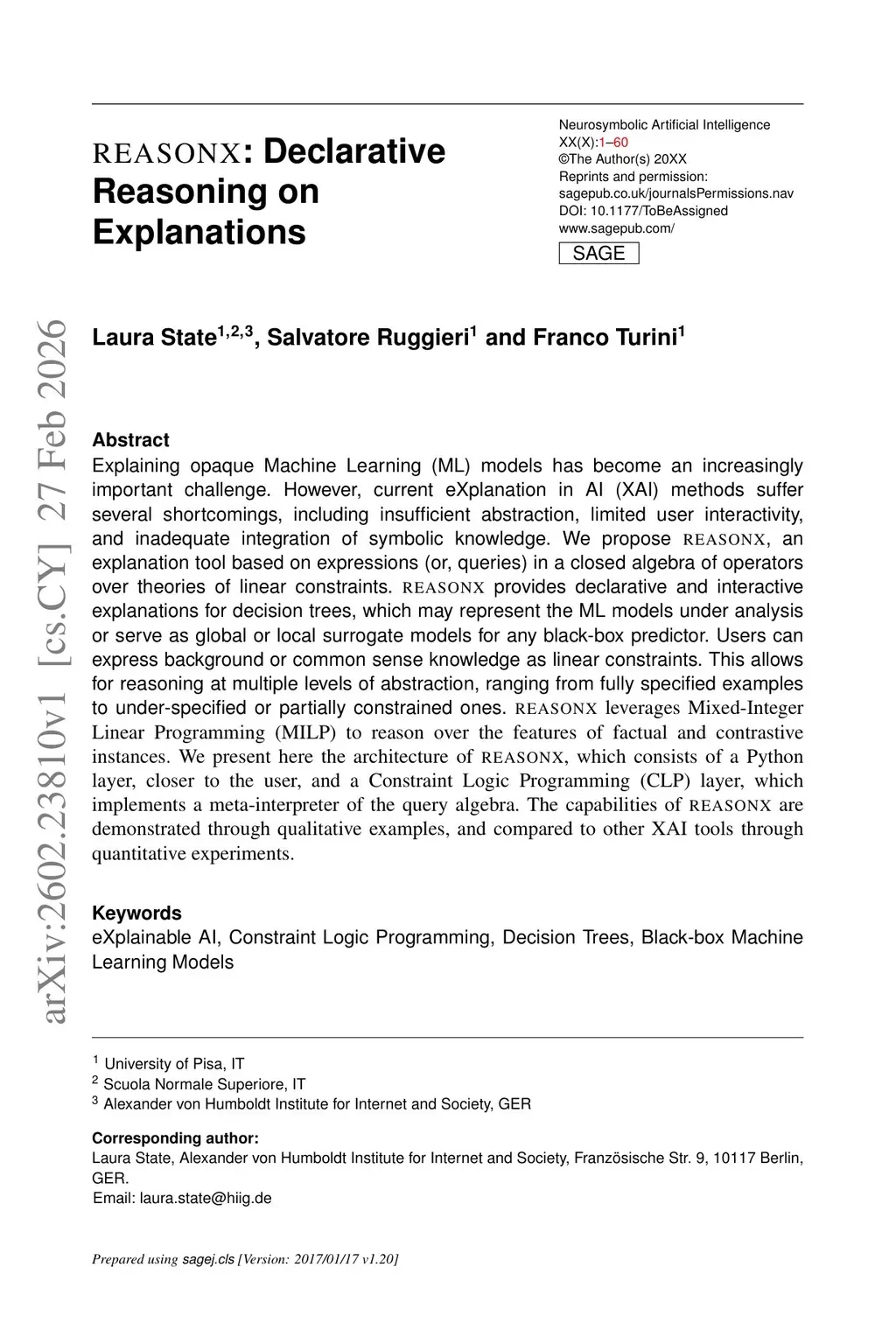 Explaining opaque Machine Learning (ML) models has become an increasingly important challenge. However, current eXplanation in AI (XAI) methods suffer several shortcomings, including insufficient abstraction, limited user interactivity, and inadequate integration of symbolic knowledge. We propose ReasonX, an explanation tool based on expressions (or, queries) in a closed algebra of operators over theories of linear constraints. ReasonX provides declarative and interactive explanations for decision trees, which may represent the ML models under analysis or serve as global or local surrogate models for any black-box predictor. Users can express background or common sense knowledge as linear constraints. This allows for reasoning at multiple levels of abstraction, ranging from fully specified examples to under-specified or partially constrained ones. ReasonX leverages Mixed-Integer Linear Programming (MILP) to reason over the features of factual and contrastive instances. We present here the architecture of ReasonX, which consists of a Python layer, closer to the user, and a Constraint Logic Programming (CLP) layer, which implements a meta-interpreter of the query algebra. The capabilities of ReasonX are demonstrated through qualitative examples, and compared to other XAI tools through quantitative experiments.
