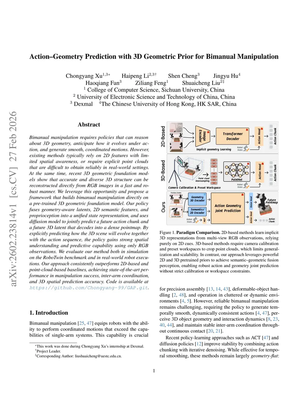 Action-Geometry Prediction with 3D Geometric Prior for Bimanual Manipulation