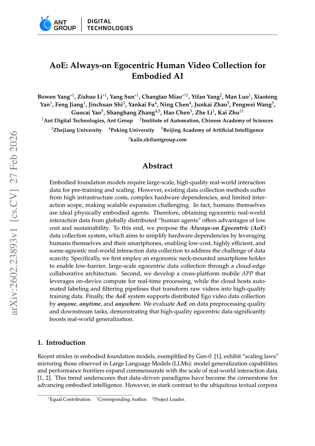 AoE: Always-on Egocentric Human Video Collection for Embodied AI