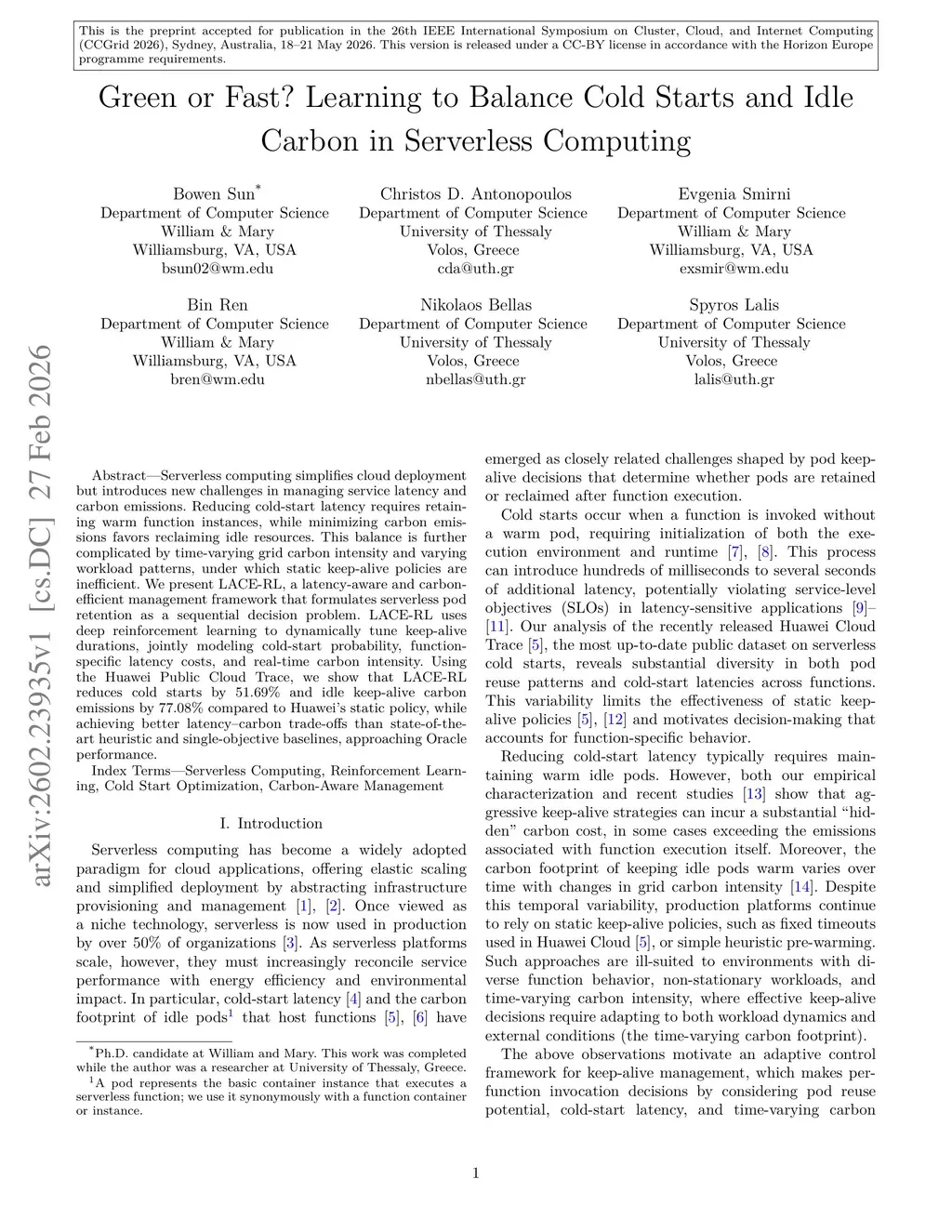 Green or Fast? Learning to Balance Cold Starts and Idle Carbon in Serverless Computing