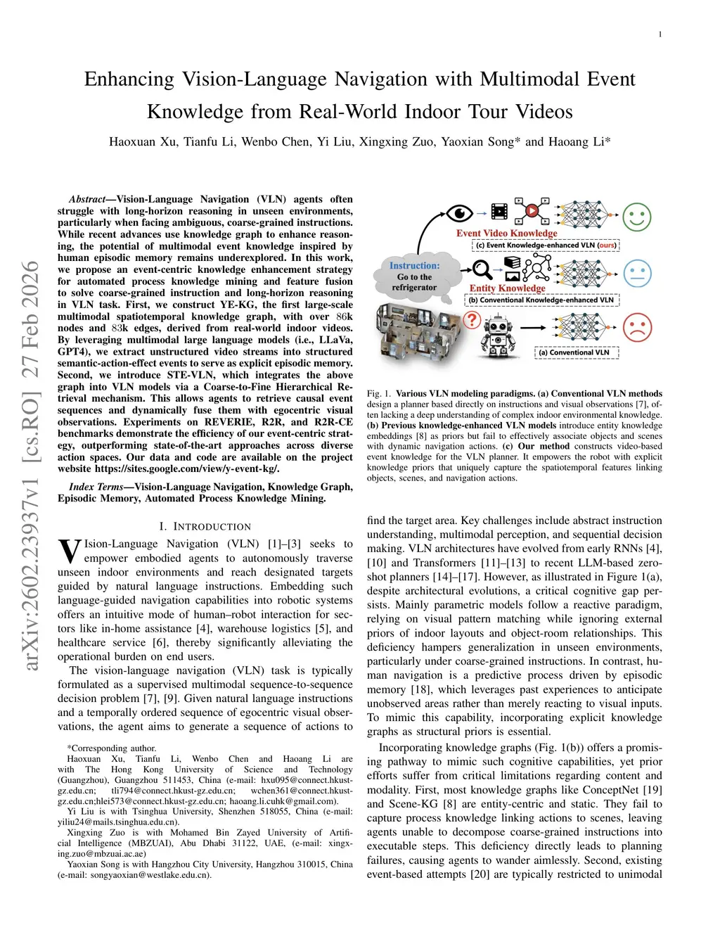 Vision-Language Navigation (VLN) agents often struggle with long-horizon reasoning in unseen environments, particularly when facing ambiguous, coarse-grained instructions. While recent advances use knowledge graph to enhance reasoning, the potential of multimodal event knowledge inspired by human episodic memory remains underexplored. In this work, we propose an event-centric knowledge enhancement strategy for automated process knowledge mining and feature fusion to solve coarse-grained instruction and long-horizon reasoning in VLN task. First, we construct YE-KG, the first large-scale multimodal spatiotemporal knowledge graph, with over 86k nodes and 83k edges, derived from real-world indoor videos. By leveraging multimodal large language models (i.e., LLaVa, GPT4), we extract unstructured video streams into structured semantic-action-effect events to serve as explicit episodic memory. Second, we introduce STE-VLN, which integrates the above graph into VLN models via a Coarse-to-Fine Hierarchical Retrieval mechanism. This allows agents to retrieve causal event sequences and dynamically fuse them with egocentric visual observations. Experiments on REVERIE, R2R, and R2R-CE benchmarks demonstrate the efficiency of our event-centric strategy, outperforming state-of-the-art approaches across diverse action spaces. Our data and code are available on the project websitethis https URL.