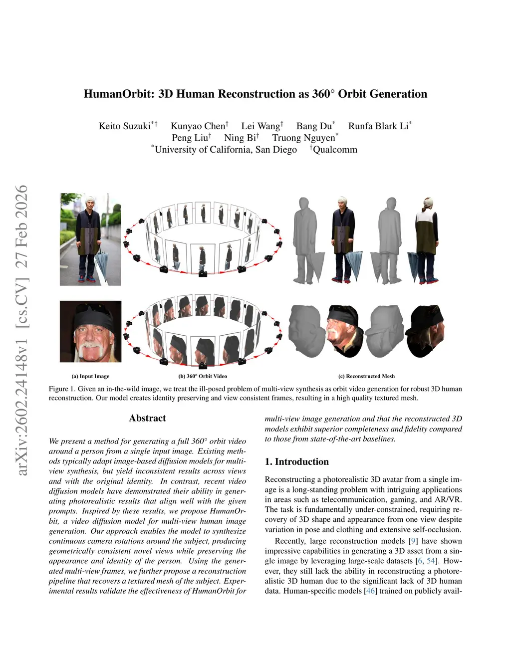 HumanOrbit: 3D Human Reconstruction as 360° Orbit Generation