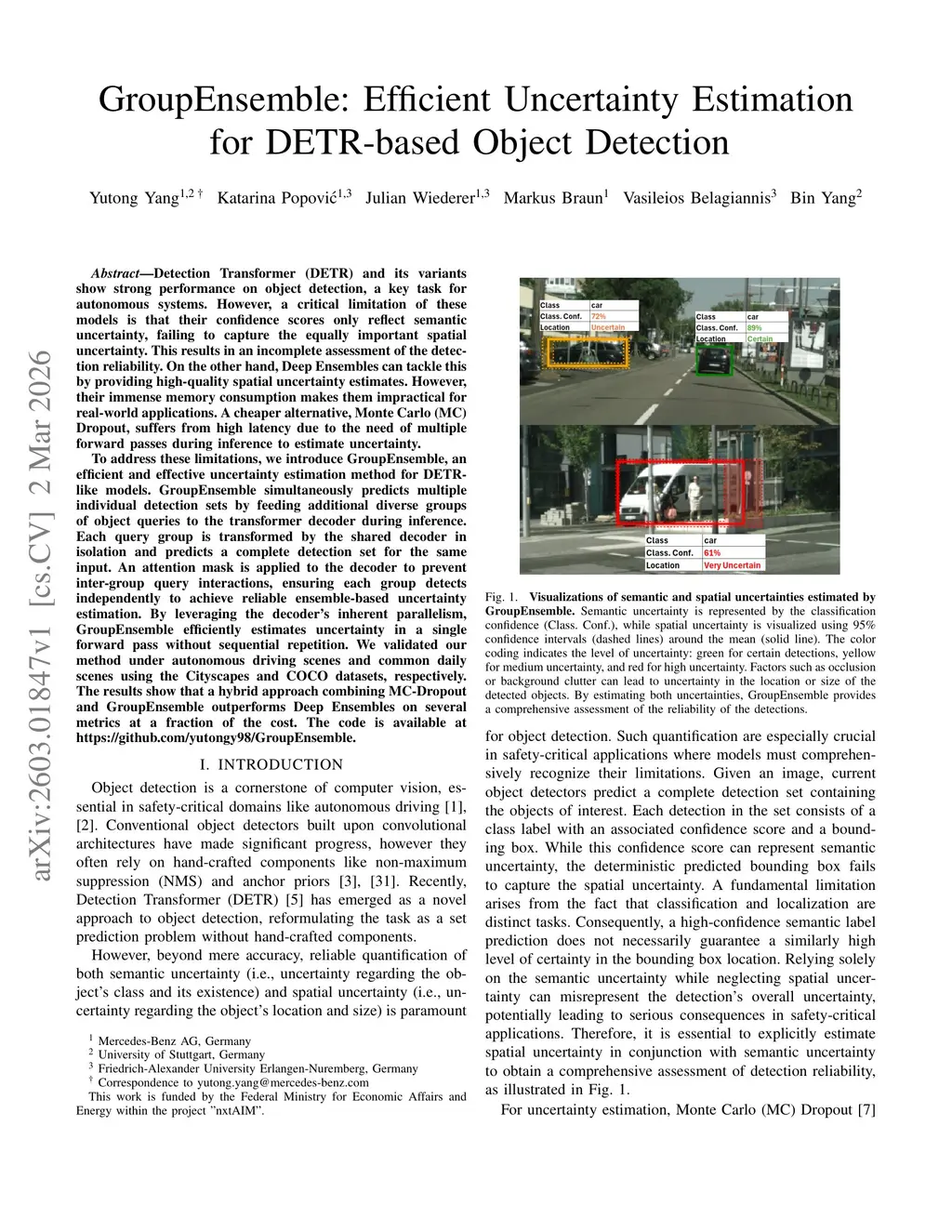 GroupEnsemble: Efficient Uncertainty Estimation for DETR-based Object Detection