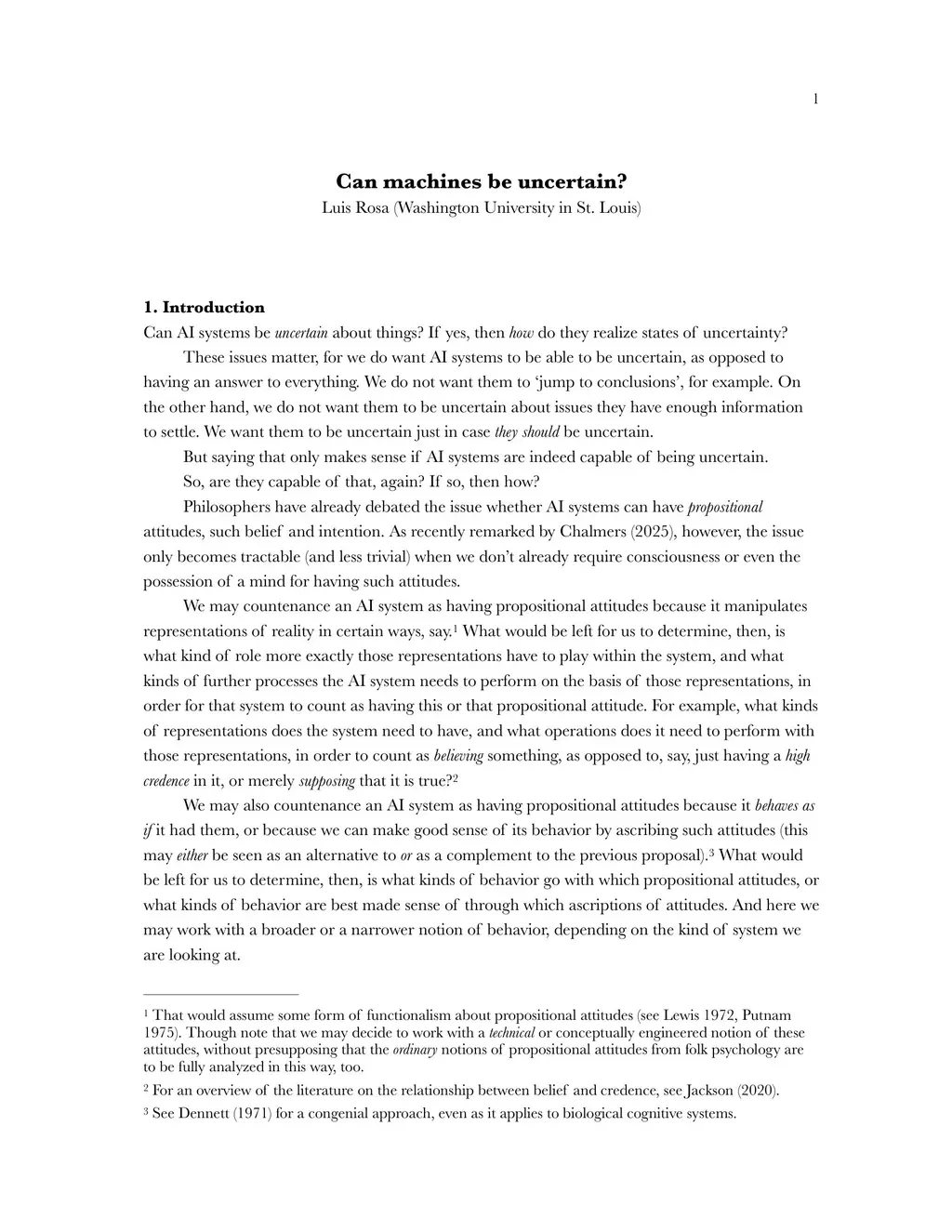Can machines be uncertain?