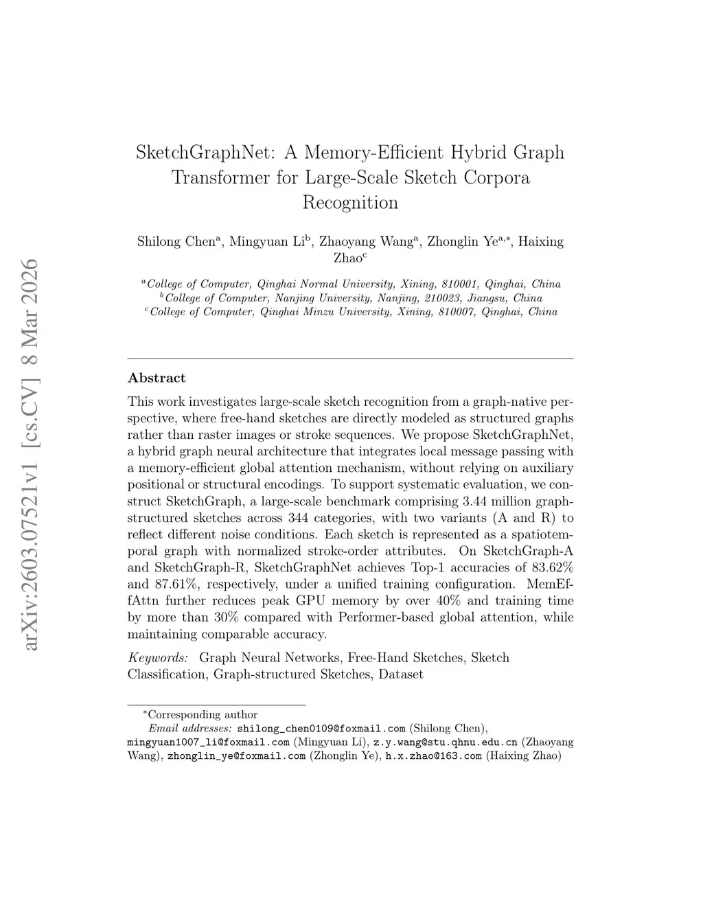 SketchGraphNet: A Memory-Efficient Hybrid Graph Transformer for Large-Scale Sketch Corpora Recognition