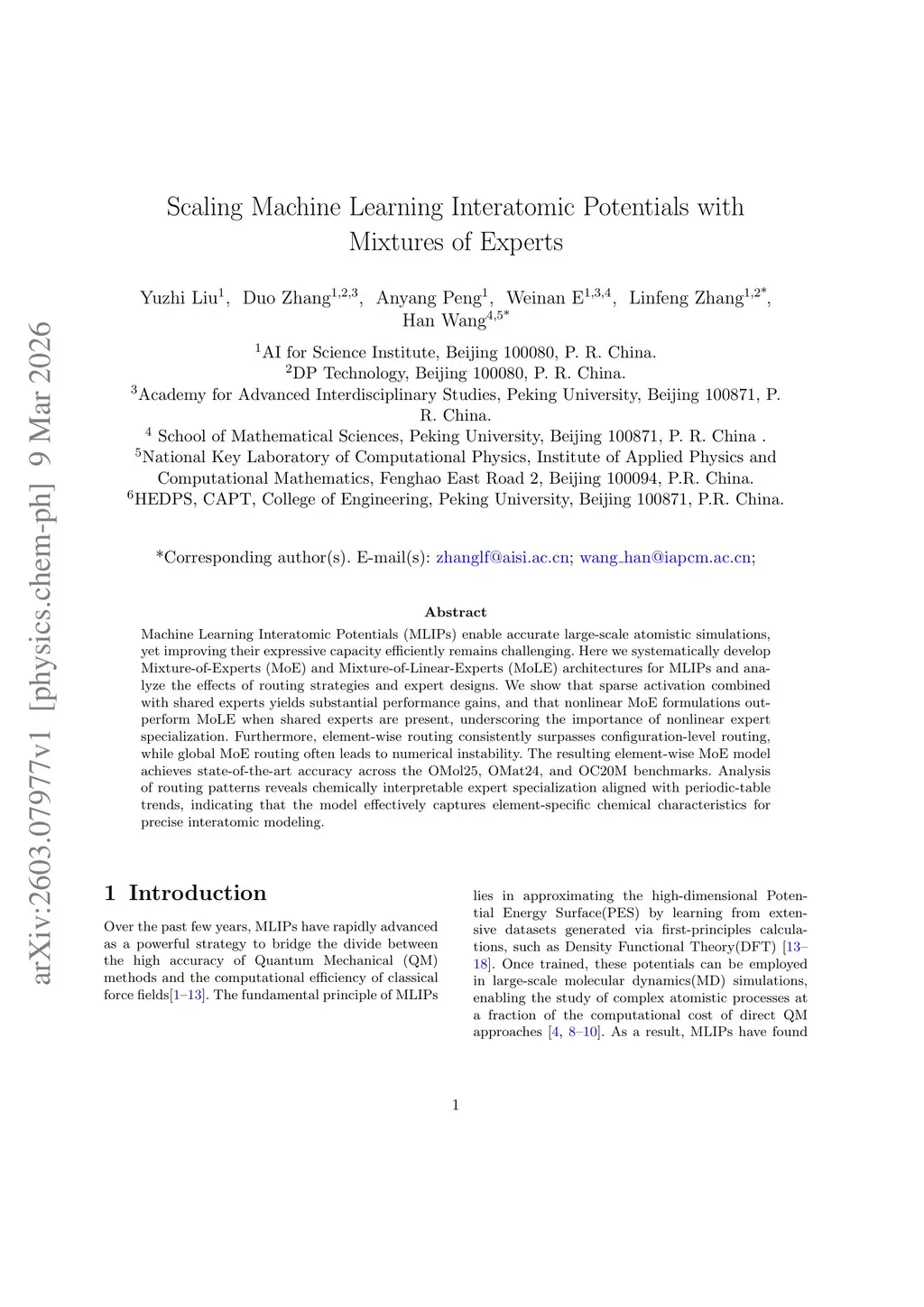 Machine Learning Interatomic Potentials (MLIPs) enable accurate large-scale atomistic simulations, yet improving their expressive capacity efficiently remains challenging. Here we systematically develop Mixture-of-Experts (MoE) and Mixture-of-Linear-Experts (MoLE) architectures for MLIPs and analyze the effects of routing strategies and expert designs. We show that sparse activation combined with shared experts yields substantial performance gains, and that nonlinear MoE formulations outperform MoLE when shared experts are present, underscoring the importance of nonlinear expert specialization. Furthermore, element-wise routing consistently surpasses configuration-level routing, while global MoE routing often leads to numerical instability. The resulting element-wise MoE model achieves state-of-the-art accuracy across the OMol25, OMat24, and OC20M benchmarks. Analysis of routing patterns reveals chemically interpretable expert specialization aligned with periodic-table trends, indicating that the model effectively captures element-specific chemical characteristics for precise interatomic modeling.