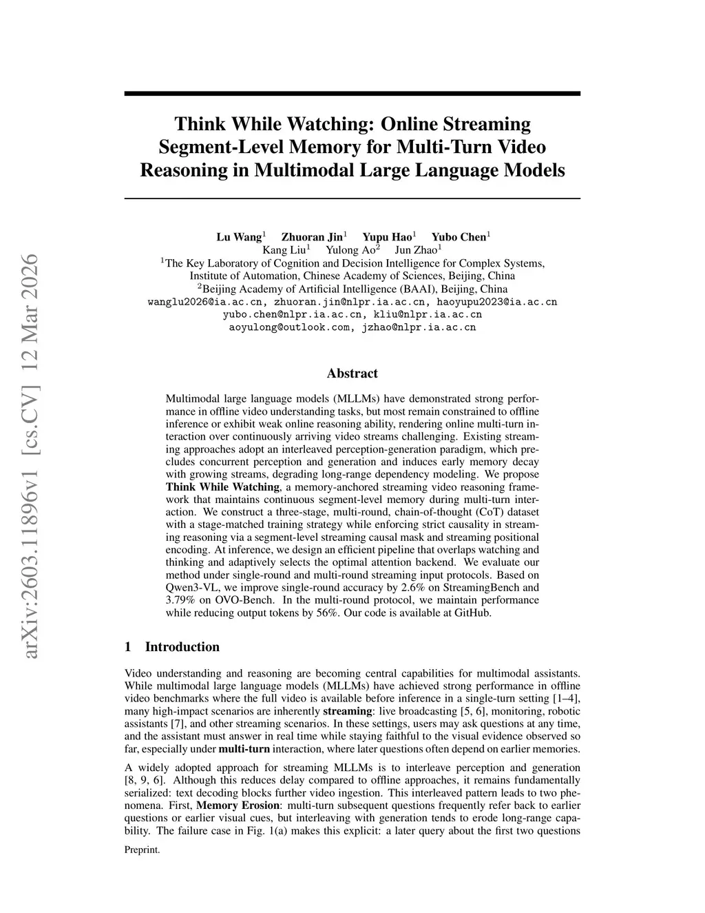 Think While Watching: Online Streaming Segment-Level Memory for Multi-Turn Video Reasoning in Multimodal Large Language Models