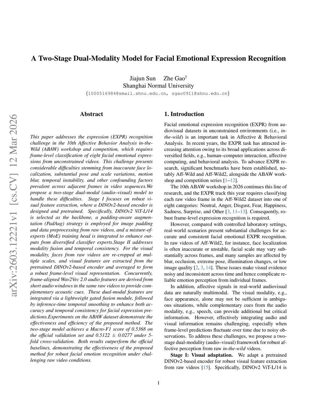 A Two-Stage Dual-Modality Model for Facial Emotional Expression Recognition