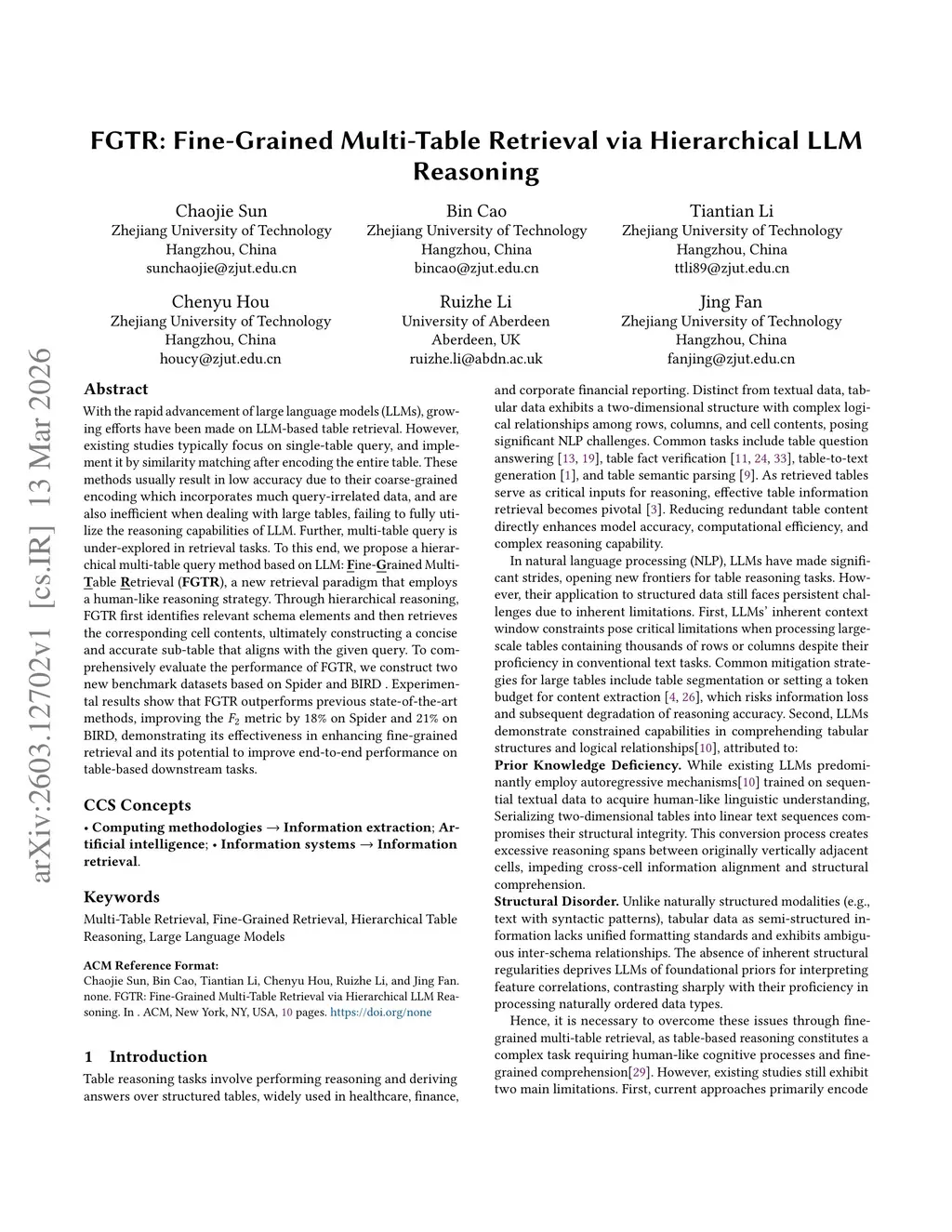 FGTR: Fine-Grained Multi-Table Retrieval via Hierarchical LLM Reasoning
