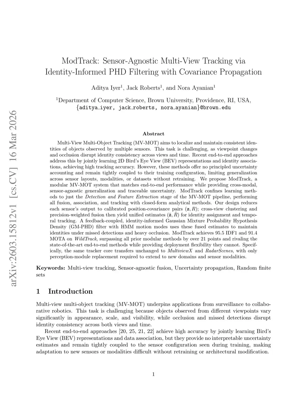 ModTrack: Sensor-Agnostic Multi-View Tracking via Identity-Informed PHD Filtering with Covariance Propagation