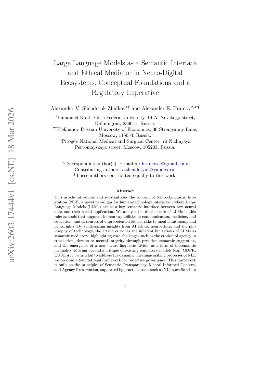 Large Language Models as a Semantic Interface and Ethical Mediator in Neuro-Digital Ecosystems: Conceptual Foundations and a Regulatory Imperative
