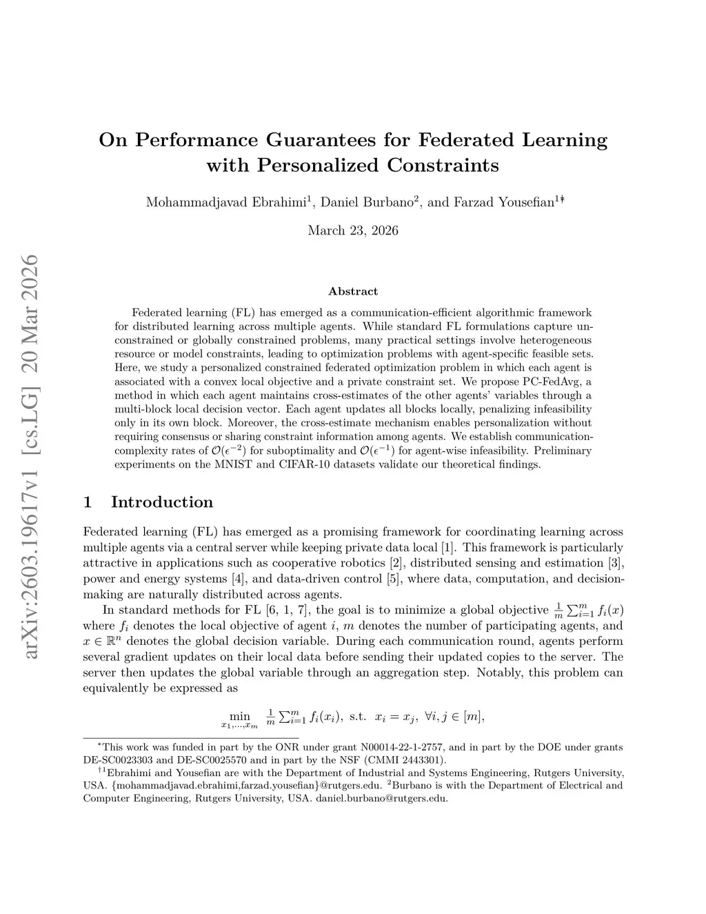 On Performance Guarantees for Federated Learning with Personalized Constraints