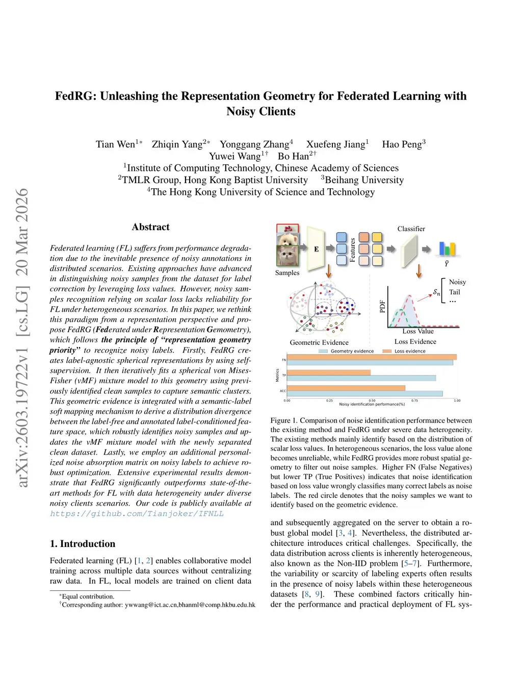 FedRG: Unleashing the Representation Geometry for Federated Learning with Noisy Clients