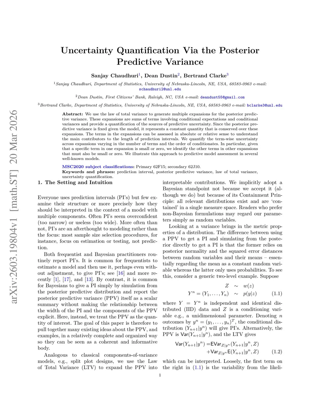 We use the law of total variance to generate multiple expansions for the posterior predictive variance. These expansions are sums of terms involving conditional expectations and conditional variances and provide a quantification of the sources of predictive uncertainty. Since the posterior predictive variance is fixed given the model, it represents a constant quantity that is conserved over these expansions. The terms in the expansions can be assessed in absolute or relative sense to understand the main contributors to the length of prediction intervals. We quantify the term-wise uncertainty across expansions varying in the number of terms and the order of conditionates. In particular, given that a specific term in one expansion is small or zero, we identify the other terms in other expansions that must also be small or zero. We illustrate this approach to predictive model assessment in several well-known models.