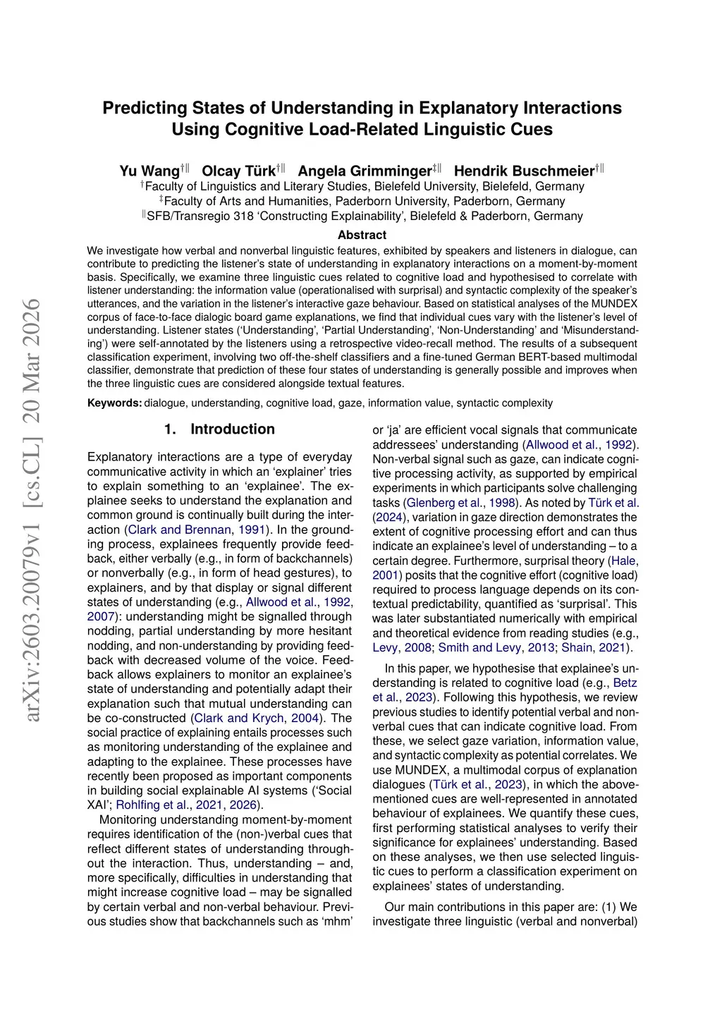 Predicting States of Understanding in Explanatory Interactions Using Cognitive Load-Related Linguistic Cues