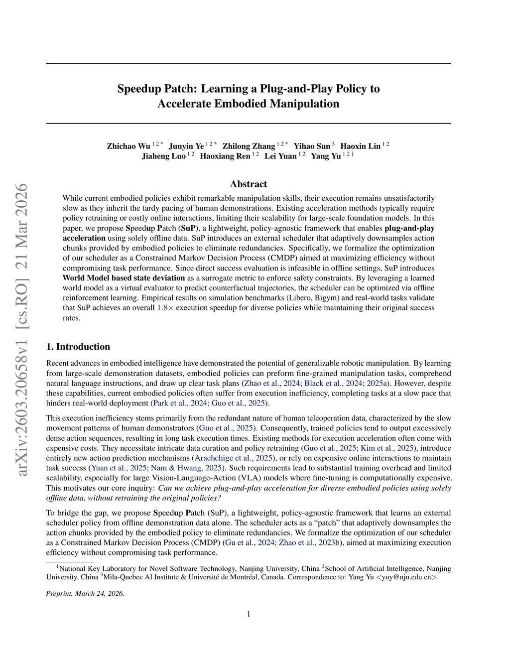 Speedup Patch: Learning a Plug-and-Play Policy to Accelerate Embodied Manipulation