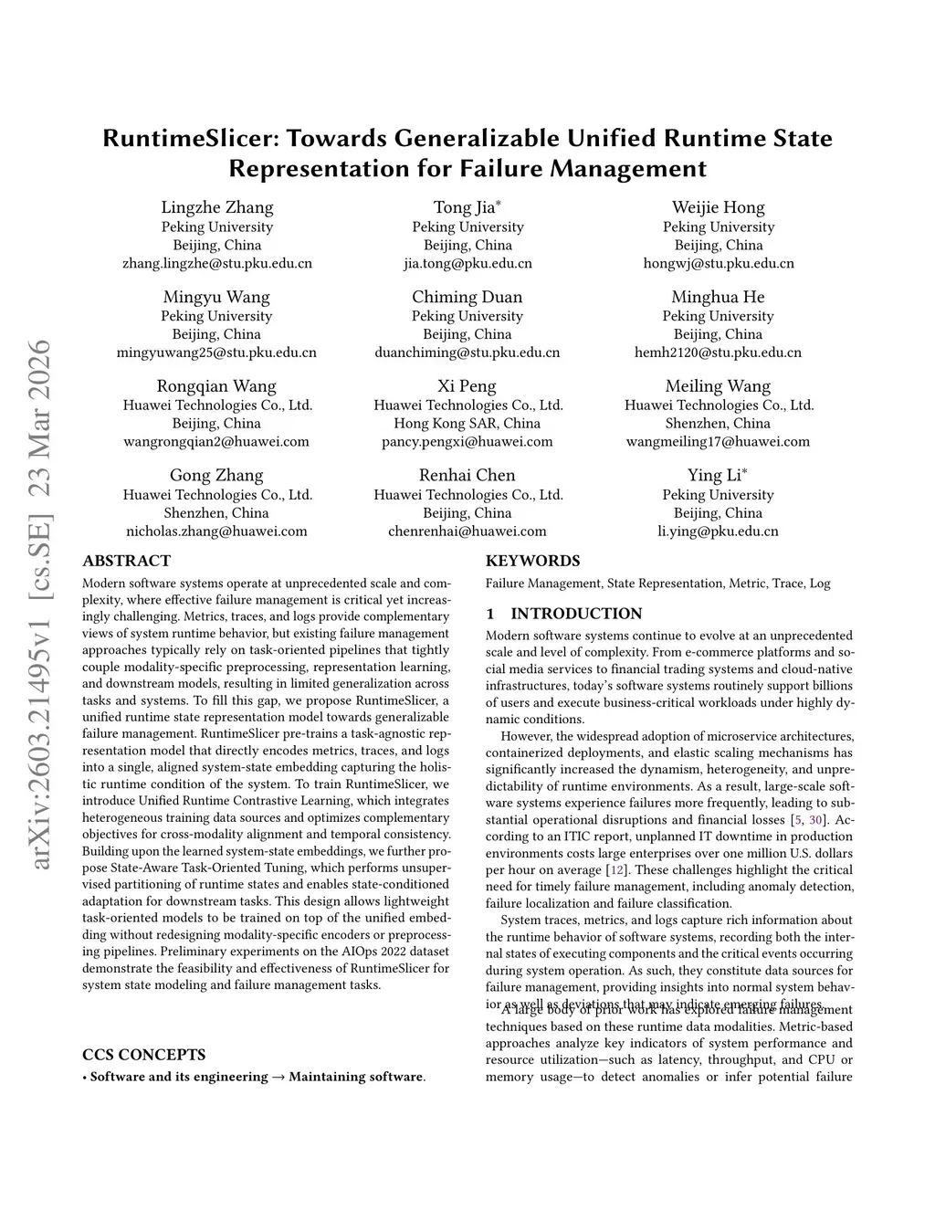 RuntimeSlicer: Towards Generalizable Unified Runtime State Representation for Failure Management