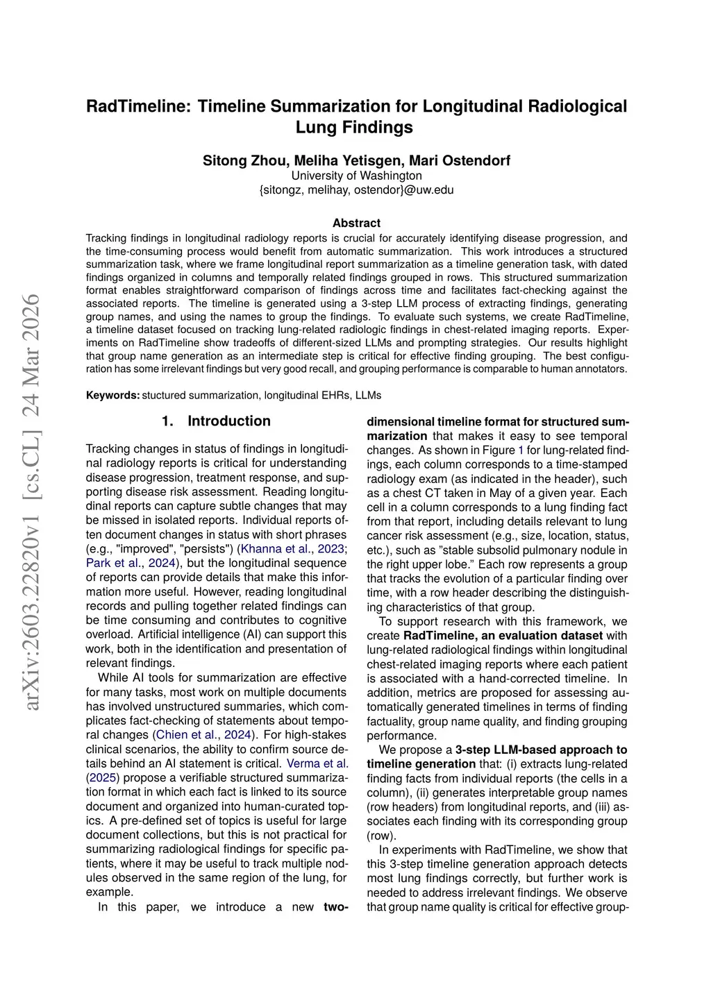 RadTimeline: Timeline Summarization for Longitudinal Radiological Lung Findings