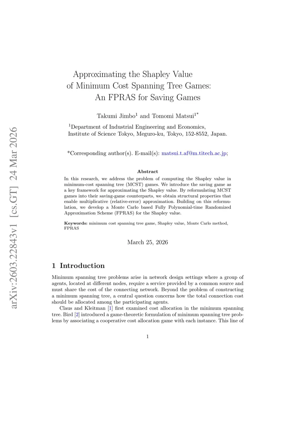In this research, we address the problem of computing the Shapley value in minimum-cost spanning tree (MCST) games. We introduce the saving game as a key framework for approximating the Shapley value. By reformulating MCST games into their saving-game counterparts, we obtain structural properties that enable multiplicative (relative-error) approximation. Building on this reformulation, we develop a Monte Carlo based Fully Polynomial-time Randomized Approximation Scheme (FPRAS) for the Shapley value.