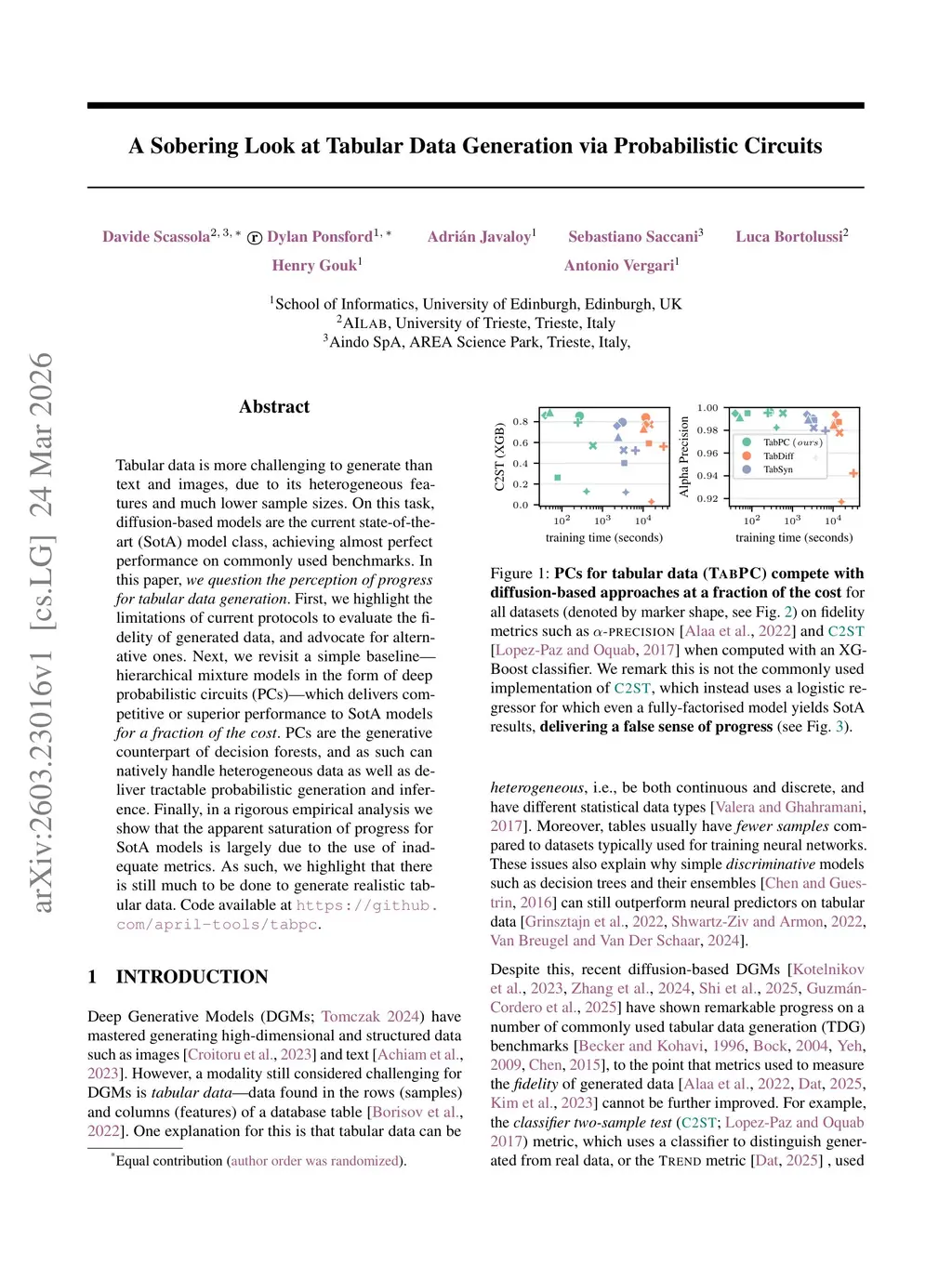 Tabular data is more challenging to generate than text and images, due to its heterogeneous features and much lower sample sizes. On this task, diffusion-based models are the current state-of-the-art (SotA) model class, achieving almost perfect performance on commonly used benchmarks. In this paper, we question the perception of progress for tabular data generation. First, we highlight the limitations of current protocols to evaluate the fidelity of generated data, and advocate for alternative ones. Next, we revisit a simple baseline -- hierarchical mixture models in the form of deep probabilistic circuits (PCs) -- which delivers competitive or superior performance to SotA models for a fraction of the cost. PCs are the generative counterpart of decision forests, and as such can natively handle heterogeneous data as well as deliver tractable probabilistic generation and inference. Finally, in a rigorous empirical analysis we show that the apparent saturation of progress for SotA models is largely due to the use of inadequate metrics. As such, we highlight that there is still much to be done to generate realistic tabular data. Code available atthis https URL.
