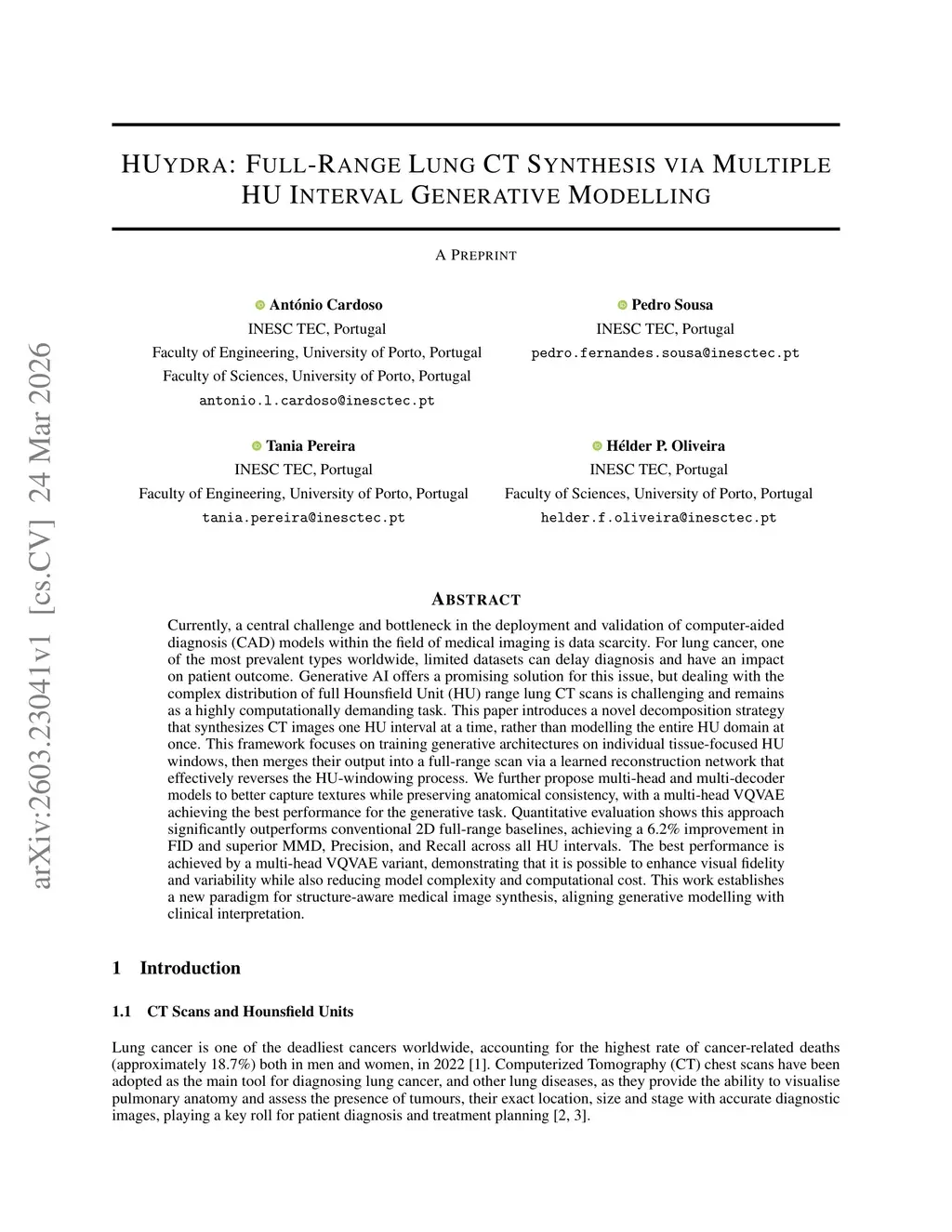 Currently, a central challenge and bottleneck in the deployment and validation of computer-aided diagnosis (CAD) models within the field of medical imaging is data scarcity. For lung cancer, one of the most prevalent types worldwide, limited datasets can delay diagnosis and have an impact on patient outcome. Generative AI offers a promising solution for this issue, but dealing with the complex distribution of full Hounsfield Unit (HU) range lung CT scans is challenging and remains as a highly computationally demanding task. This paper introduces a novel decomposition strategy that synthesizes CT images one HU interval at a time, rather than modelling the entire HU domain at once. This framework focuses on training generative architectures on individual tissue-focused HU windows, then merges their output into a full-range scan via a learned reconstruction network that effectively reverses the HU-windowing process. We further propose multi-head and multi-decoder models to better capture textures while preserving anatomical consistency, with a multi-head VQVAE achieving the best performance for the generative task. Quantitative evaluation shows this approach significantly outperforms conventional 2D full-range baselines, achieving a 6.2% improvement in FID and superior MMD, Precision, and Recall across all HU intervals. The best performance is achieved by a multi-head VQVAE variant, demonstrating that it is possible to enhance visual fidelity and variability while also reducing model complexity and computational cost. This work establishes a new paradigm for structure-aware medical image synthesis, aligning generative modelling with clinical interpretation.