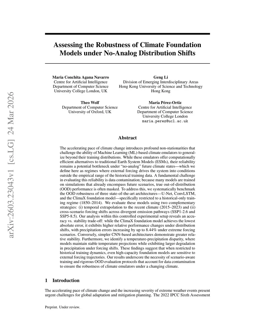The accelerating pace of climate change introduces profound non-stationarities that challenge the ability of Machine Learning based climate emulators to generalize beyond their training distributions. While these emulators offer computationally efficient alternatives to traditional Earth System Models, their reliability remains a potential bottleneck under "no-analog" future climate states, which we define here as regimes where external forcing drives the system into conditions outside the empirical range of the historical training data. A fundamental challenge in evaluating this reliability is data contamination; because many models are trained on simulations that already encompass future scenarios, true out-of-distribution (OOD) performance is often masked. To address this, we benchmark the OOD robustness of three state-of-the-art architectures: U-Net, ConvLSTM, and the ClimaX foundation model specifically restricted to a historical-only training regime (1850-2014). We evaluate these models using two complementary strategies: (i) temporal extrapolation to the recent climate (2015-2023) and (ii) cross-scenario forcing shifts across divergent emission pathways. Our analysis within this experimental setup reveals an accuracy vs. stability trade-off: while the ClimaX foundation model achieves the lowest absolute error, it exhibits higher relative performance changes under distribution shifts, with precipitation errors increasing by up to 8.44% under extreme forcing scenarios. These findings suggest that when restricted to historical training dynamics, even high-capacity foundation models are sensitive to external forcing trajectories. Our results underscore the necessity of scenario-aware training and rigorous OOD evaluation protocols to ensure the robustness of climate emulators under a changing climate.