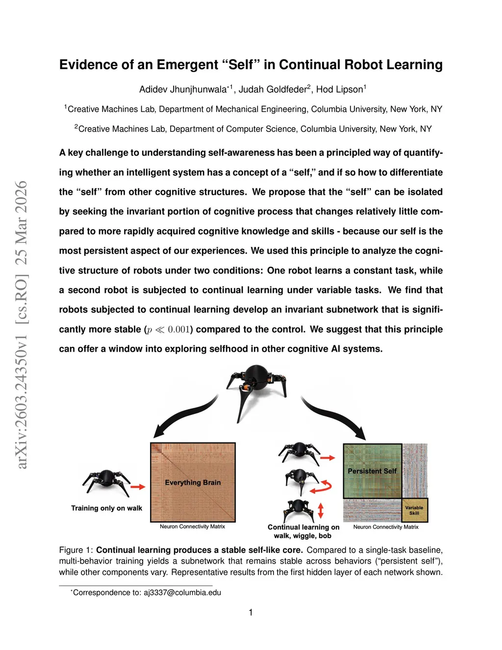 Evidence of an Emergent "Self" in Continual Robot Learning