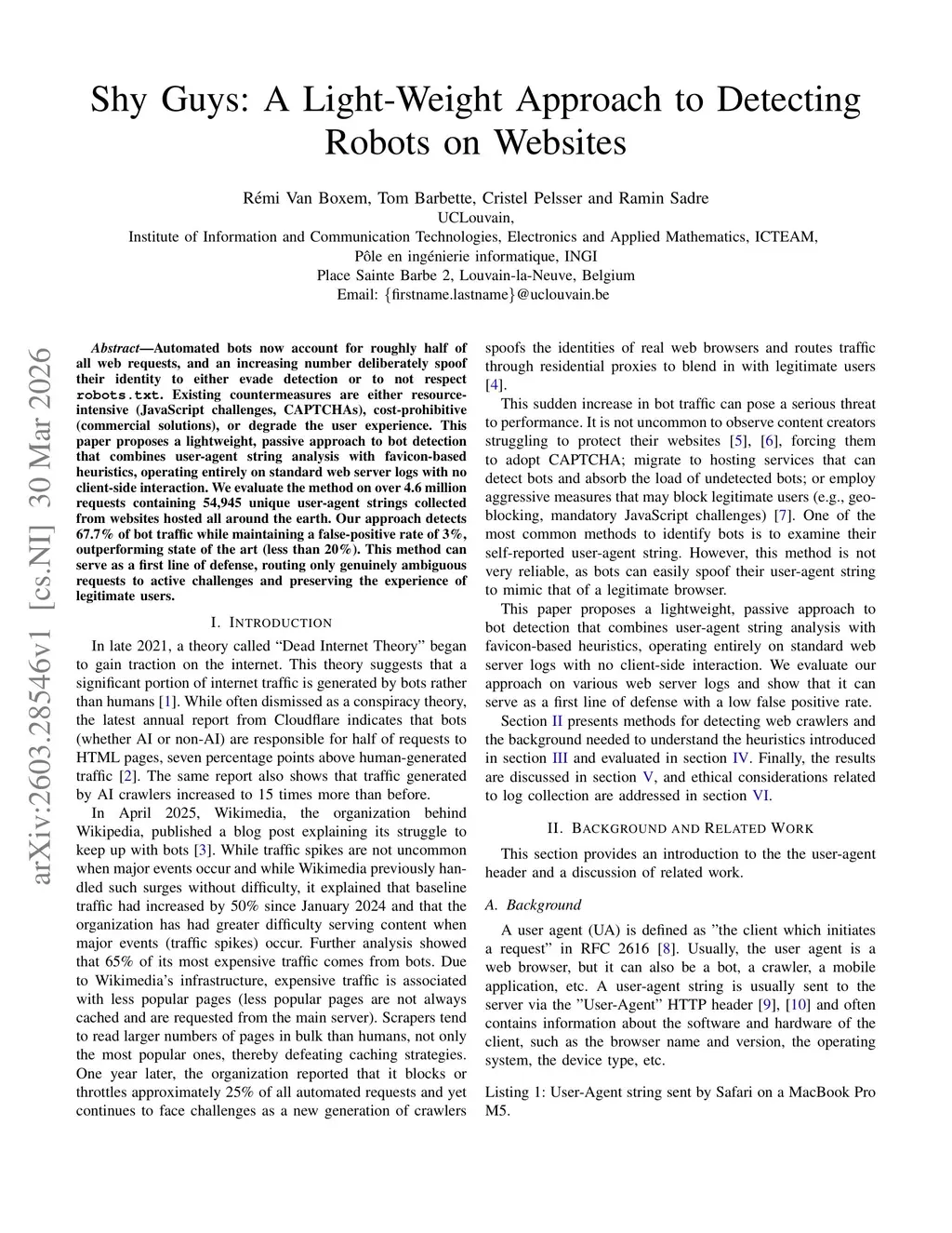 Shy Guys: A Light-Weight Approach to Detecting Robots on Websites