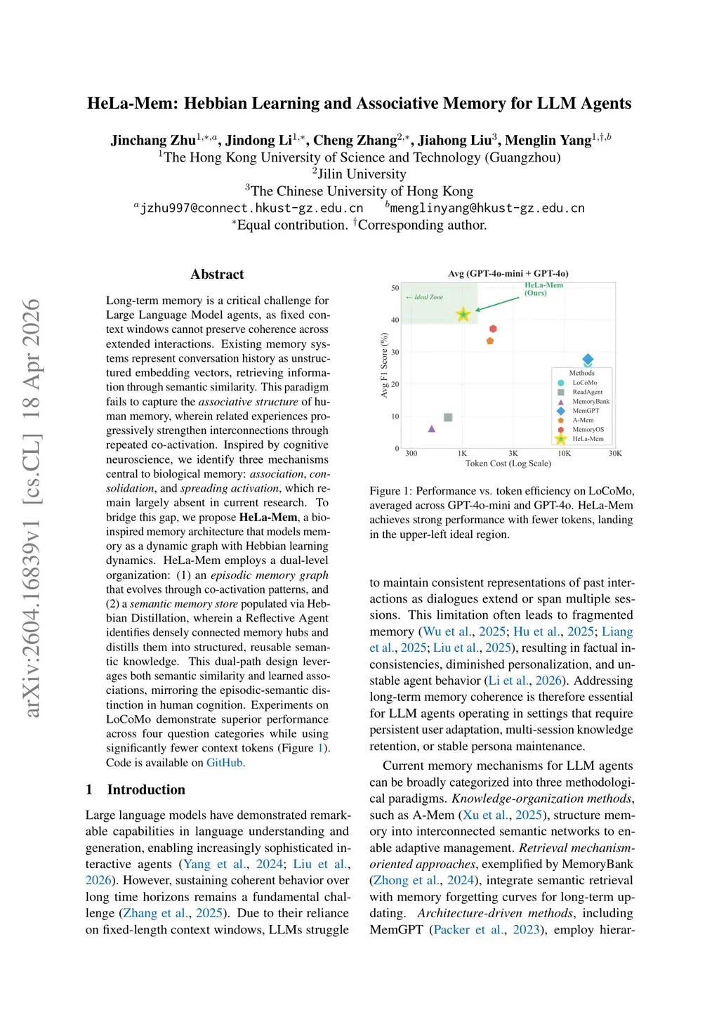 HeLa-Mem: Hebbian Learning and Associative Memory for LLM Agents