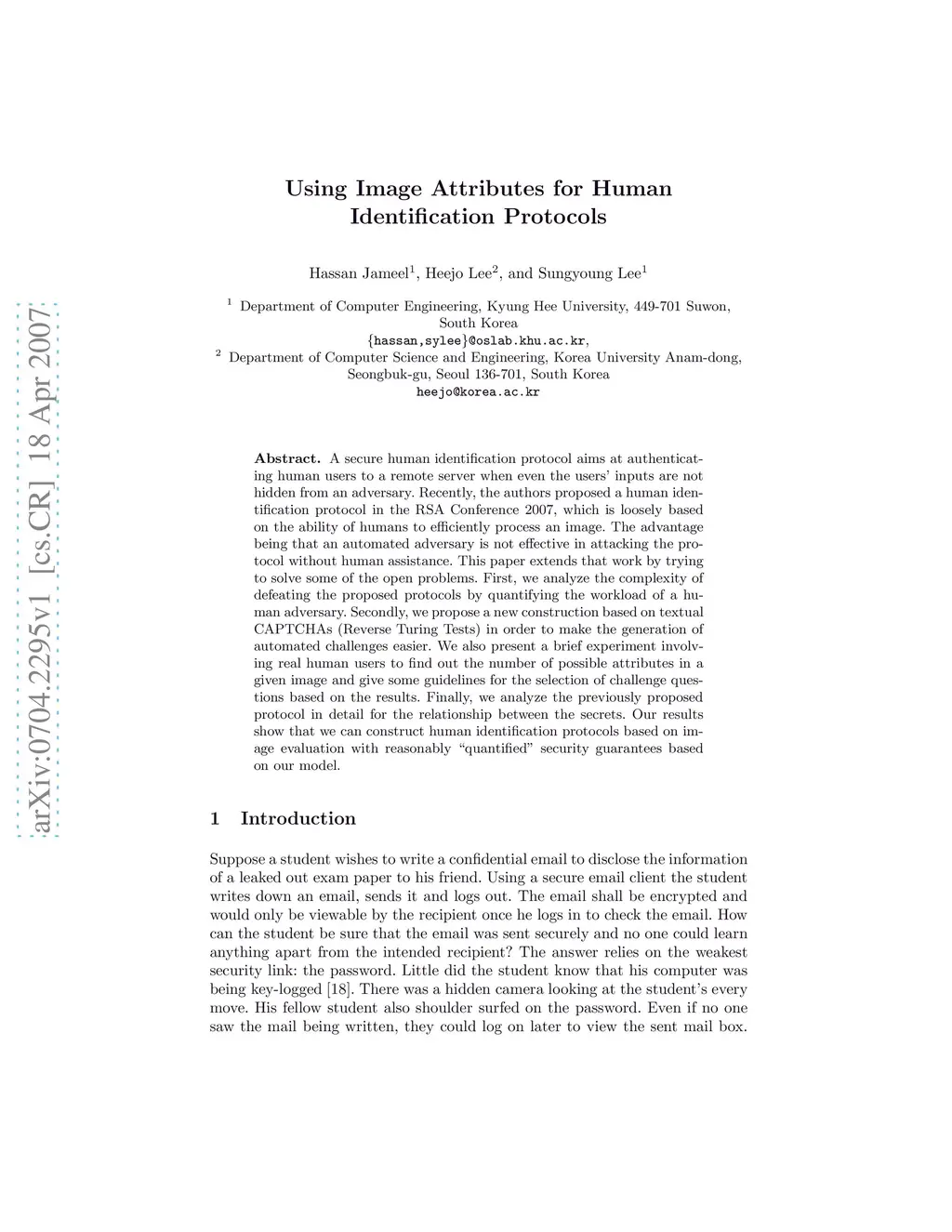 A secure human identification protocol aims at authenticating human users to a remote server when even the users' inputs are not hidden from an adversary. Recently, the authors proposed a human identification protocol in the RSA Conference 2007, which is loosely based on the ability of humans to efficiently process an image. The advantage being that an automated adversary is not effective in attacking the protocol without human assistance. This paper extends that work by trying to solve some of the open problems. First, we analyze the complexity of defeating the proposed protocols by quantifying the workload of a human adversary. Secondly, we propose a new construction based on textual CAPTCHAs (Reverse Turing Tests) in order to make the generation of automated challenges easier. We also present a brief experiment involving real human users to find out the number of possible attributes in a given image and give some guidelines for the selection of challenge questions based on the results. Finally, we analyze the previously proposed protocol in detail for the relationship between the secrets. Our results show that we can construct human identification protocols based on image evaluation with reasonably ``quantified'' security guarantees based on our model.