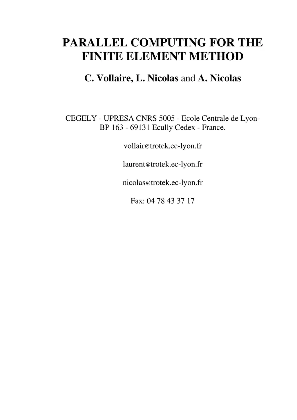 Parallel computing for the finite element method