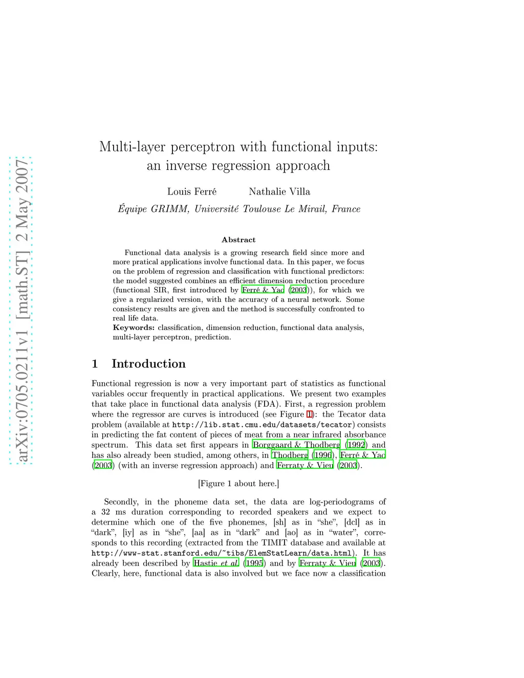 Multilayer Perceptron with Functional Inputs: an Inverse Regression