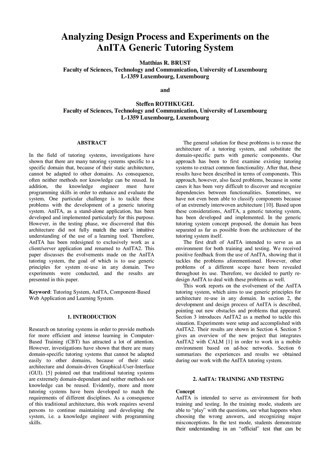 Analyzing Design Process and Experiments on the AnITA Generic Tutoring
