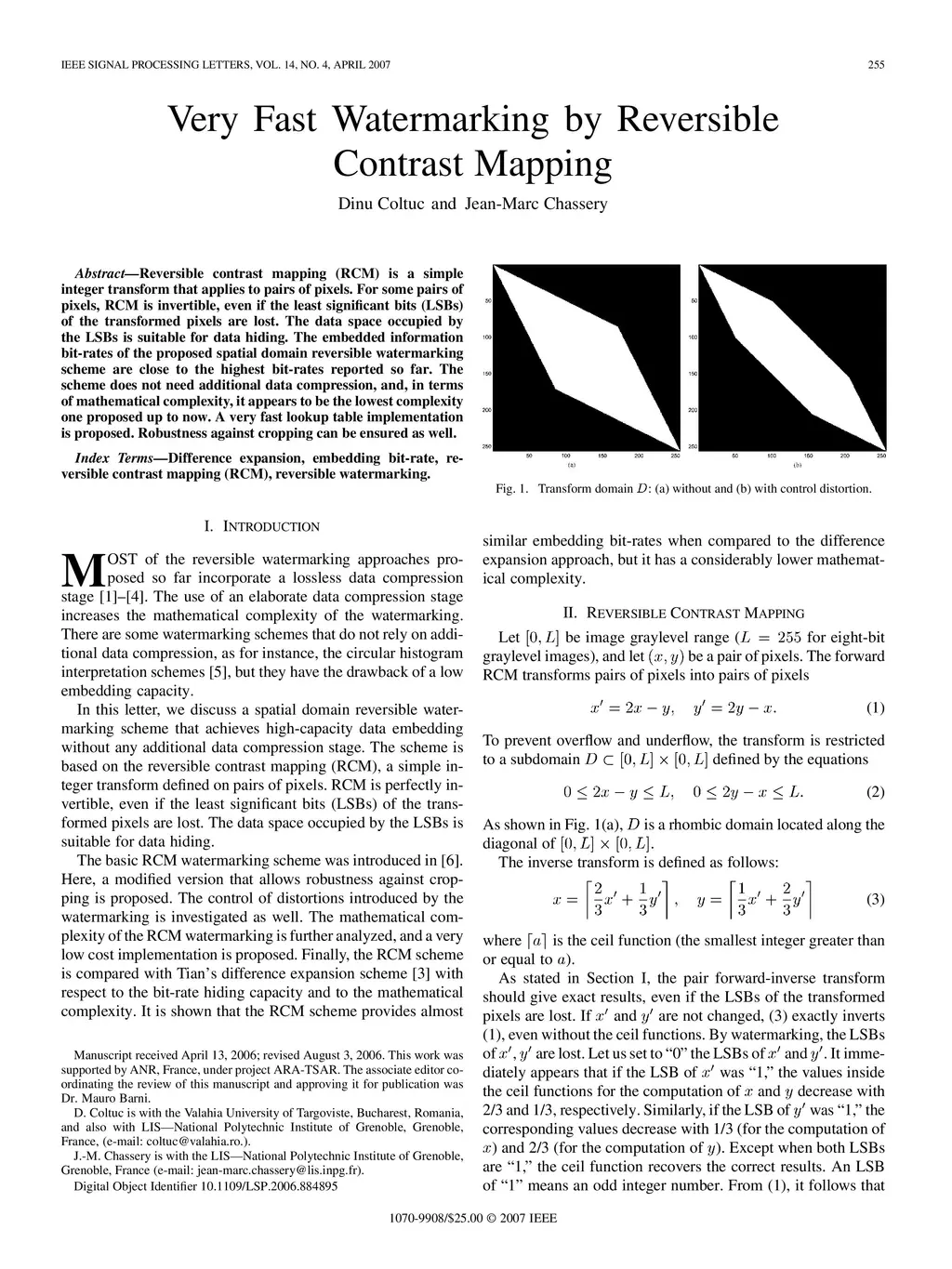 Very fast watermarking by reversible contrast mapping