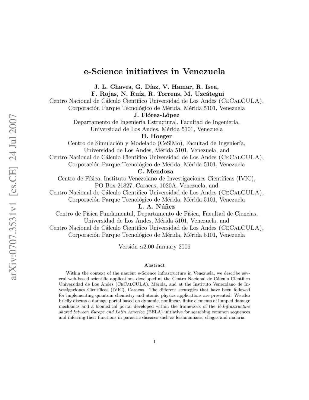 Within the context of the nascent e-Science infrastructure in Venezuela, we describe several web-based scientific applications developed at the Centro Nacional de Calculo Cientifico Universidad de Los Andes (CeCalCULA), Merida, and at the Instituto Venezolano de Investigaciones Cientificas (IVIC), Caracas. The different strategies that have been followed for implementing quantum chemistry and atomic physics applications are presented. We also briefly discuss a damage portal based on dynamic, nonlinear, finite elements of lumped damage mechanics and a biomedical portal developed within the framework of the \textit{E-Infrastructure shared between Europe and Latin America} (EELA) initiative for searching common sequences and inferring their functions in parasitic diseases such as leishmaniasis, chagas and malaria.