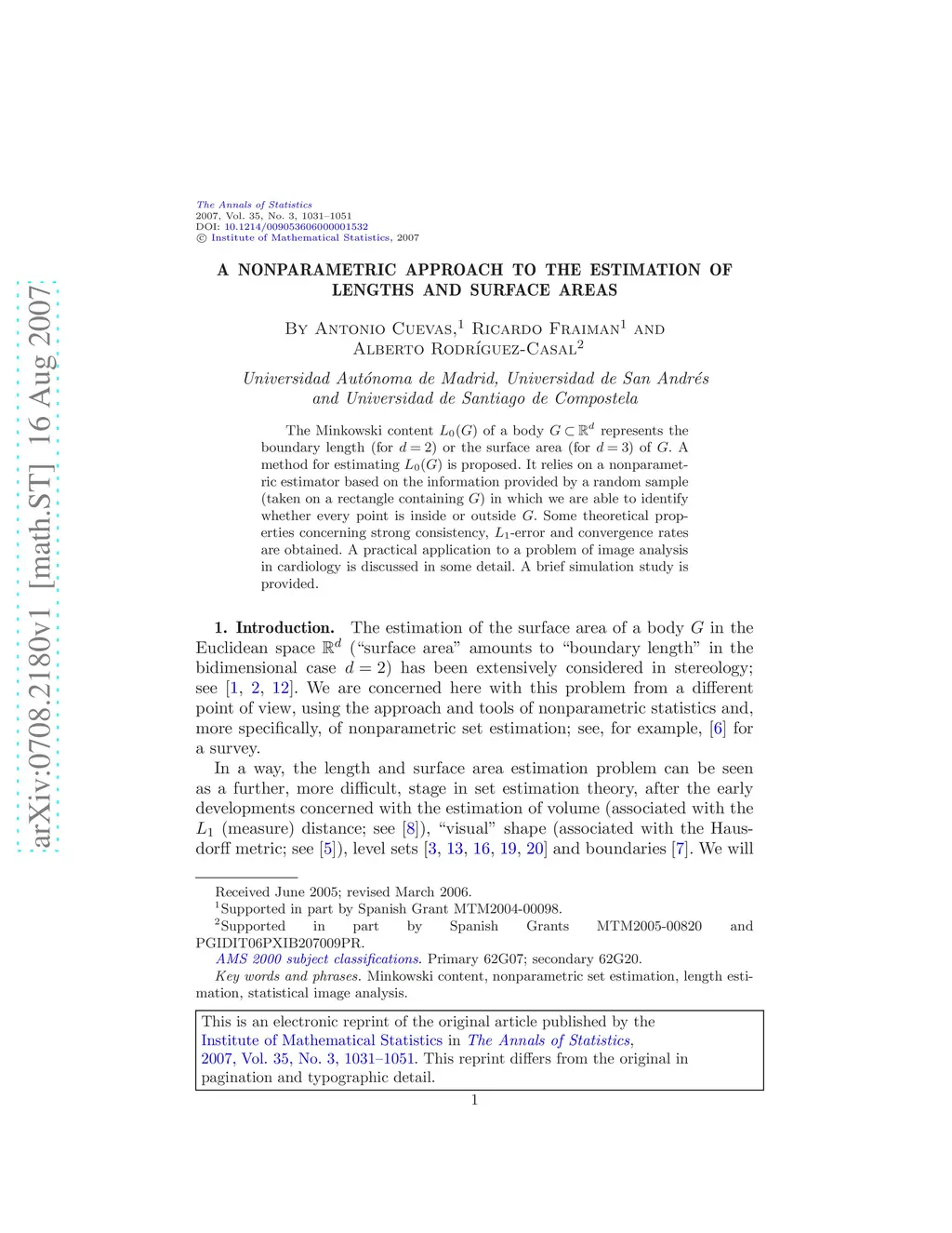A nonparametric approach to the estimation of lengths and surface areas