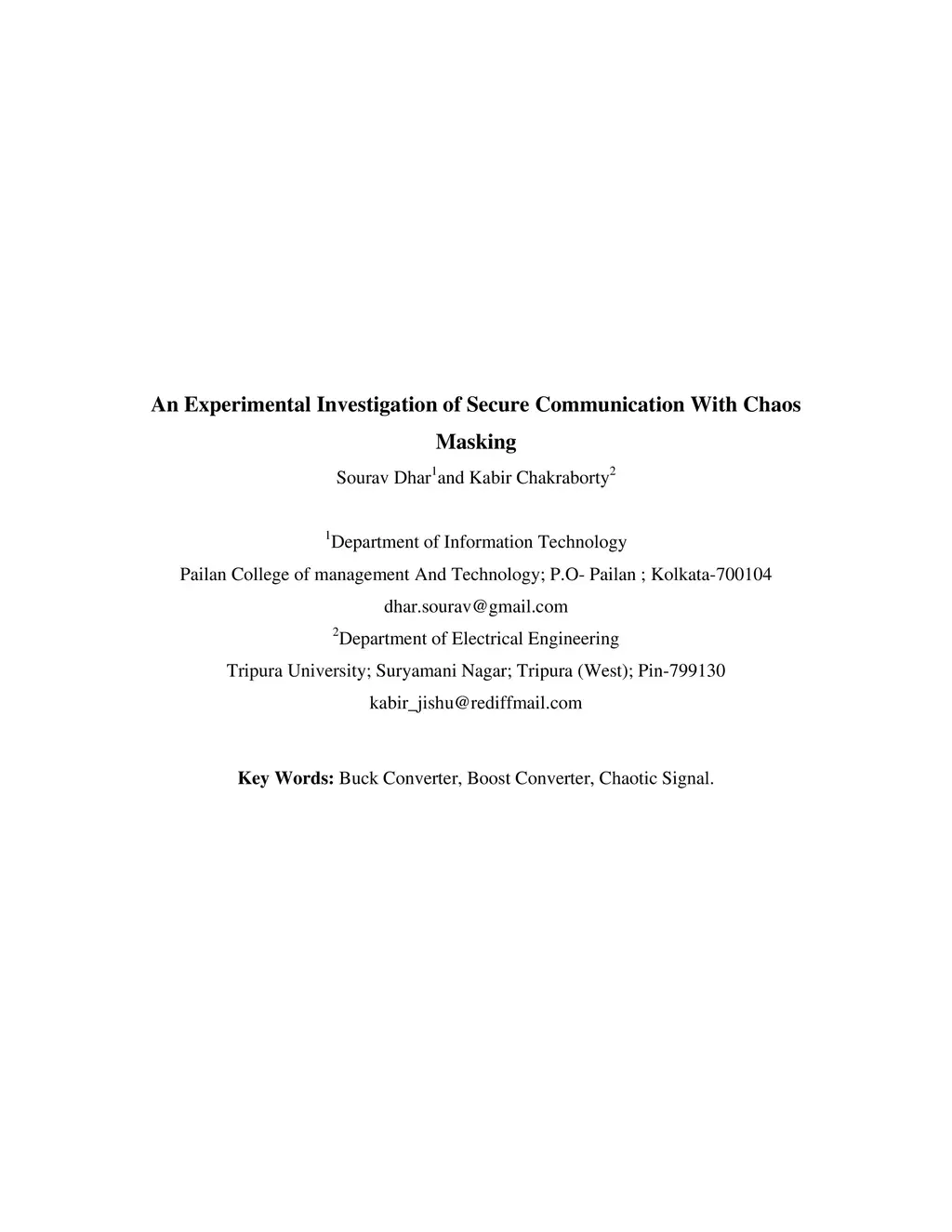 An Experimental Investigation of Secure Communication With Chaos Masking