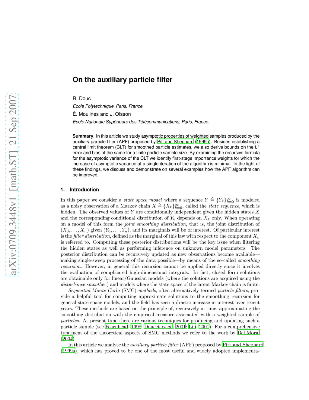 In this article we study asymptotic properties of weighted samples produced by the auxiliary particle filter (APF) proposed by pitt and shephard (1999). Besides establishing a central limit theorem (CLT) for smoothed particle estimates, we also derive bounds on the Lp error and bias of the same for a finite particle sample size. By examining the recursive formula for the asymptotic variance of the CLT we identify first-stage importance weights for which the increase of asymptotic variance at a single iteration of the algorithm is minimal. In the light of these findings, we discuss and demonstrate on several examples how the APF algorithm can be improved.