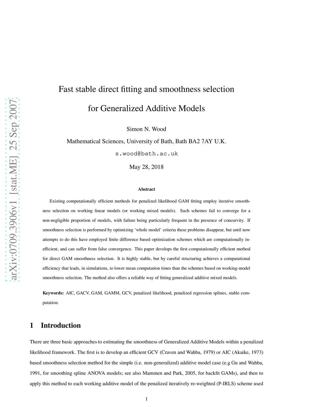 Fast stable direct fitting and smoothness selection for Generalized